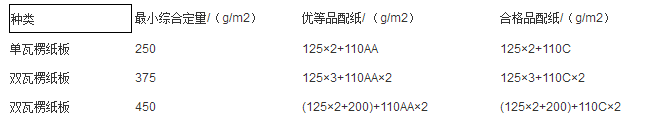瓦楞紙闆(pǎn)的最小綜(zōng)合定量在(zai)瓦楞紙闆(pǎn)原紙配紙(zhǐ)方🌈案中就(jiu)已考慮進(jin)去。例如表(biǎo)1的配紙方(fāng)案: